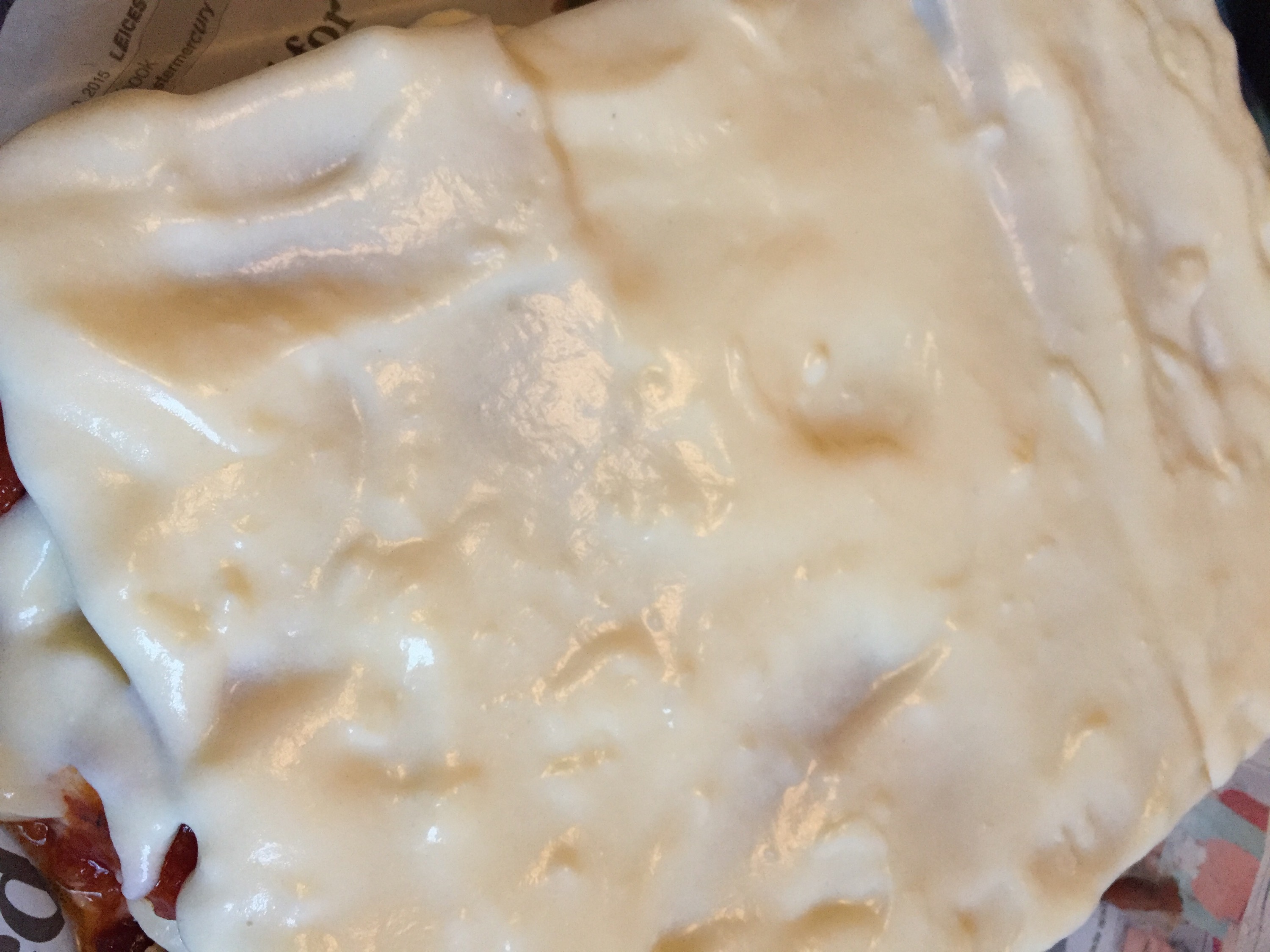 In the meantime make up the sauce, melt the butter in a sauce pan. Whisk the plain flour into the milk until there’s no lumps. Once the butter has melted pour the milk into the saucepan and heat on medium heat until the sauce has thickened. Keep stirring all the while while sauce is thickening. Add the handful of grated cheese and let that melt into the sauce, add salt and pepper as required.